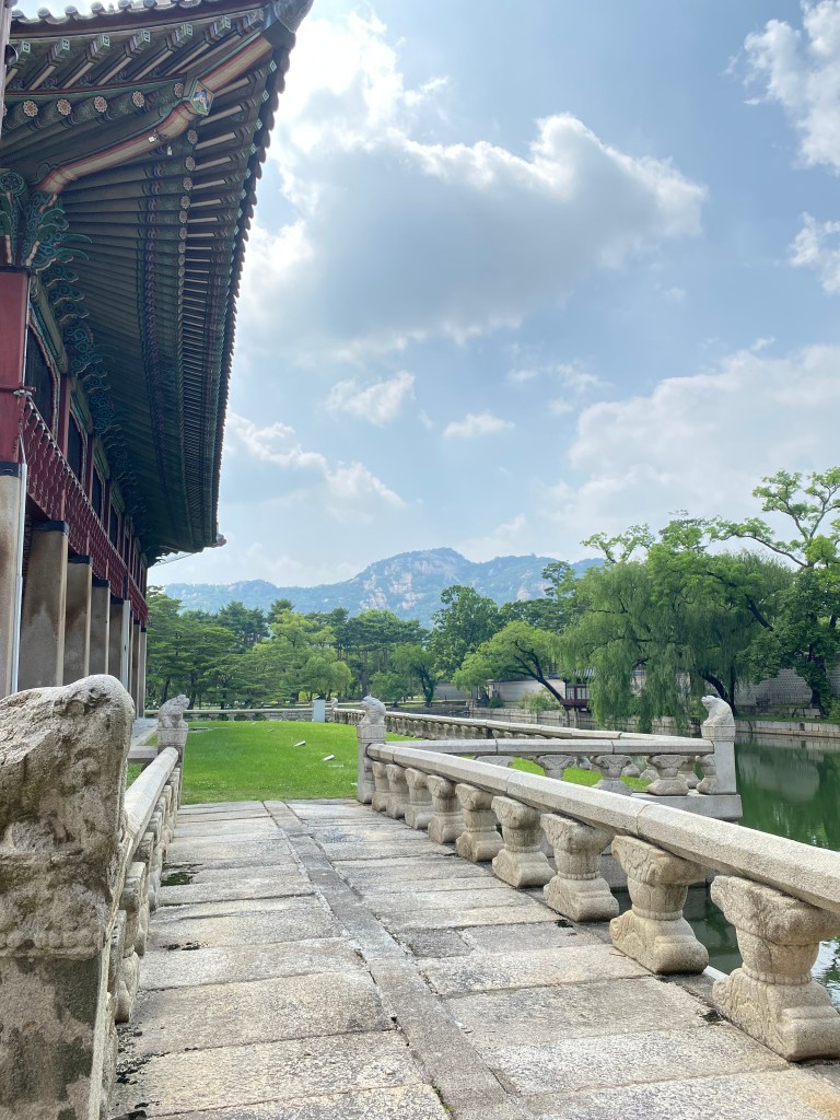 Out of the three Palaces I visited, Gyeongbokgung was my favourite. At some point of the visit, you reach an area surrounded by water and nature. I adored the atmosphere and stillness of that place and stayed here breathing-in the moment (try breathing in a Hanbok) for a long time.